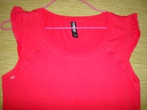 Nové,červené tričko. V podpaží na způsob tílka.