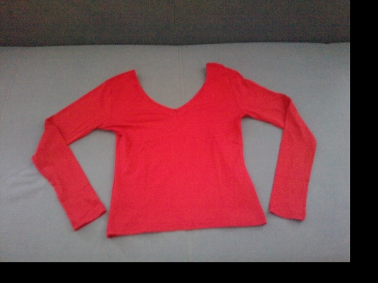 Prodám červené tričko s dlouhym rukávem a V výstřihem ve předu i vzadu , delá hezký dekolt