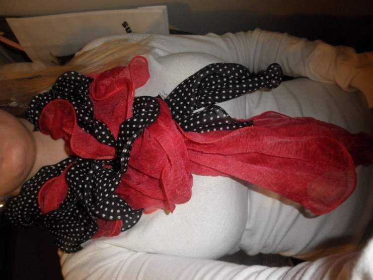 Krásný červeno černý šátek zakoupený k červeným šatům na ples, bohužel mám moc šátku a tento nenosím