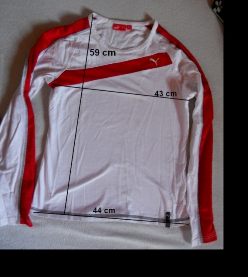 0Nabízím dlouhé červenobílé triko značky Puma, velikost uvedena L.