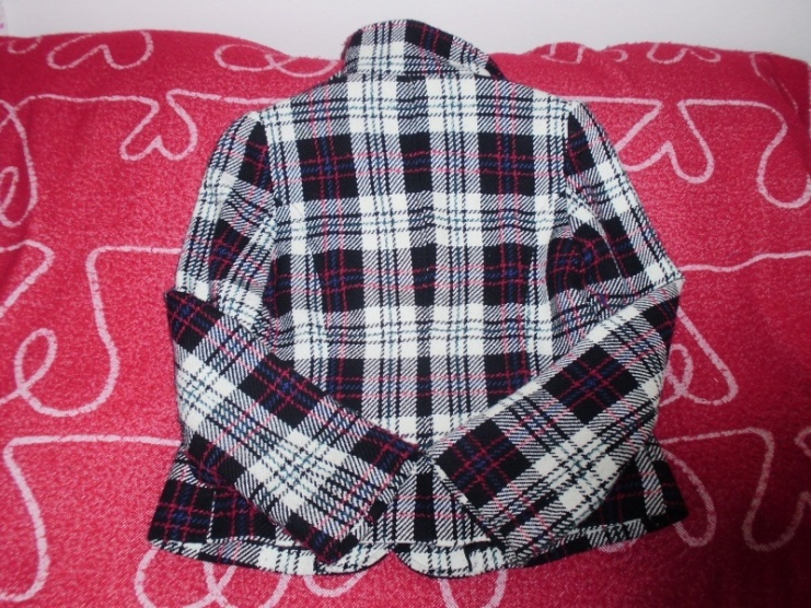 Barva kabátku je červená,černá a bílá-károvaná. Velikost 38 a délka 60 cm.Má volnější střih,ale perfektně padne. Moje cena je 380 kč vč. pošty