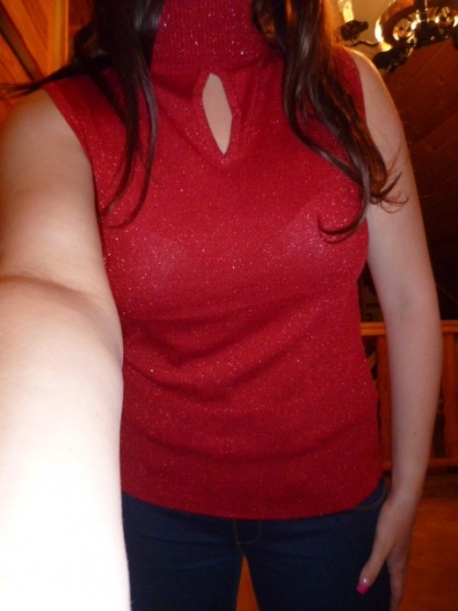 Prodávám červený top svetrového materiálu se stojáčkem. Dá se nosit jen tak nebo na tričko s dlouhým rukávem. Je nenošený, dostala jsem ho, ale nehodí se mi. Je k němu ještě pásek stejného materiálu a barvy. Prodám za 99 Kč vč. poštovného. Jo, velikost je psaná L, ale spíše by sedla na M.