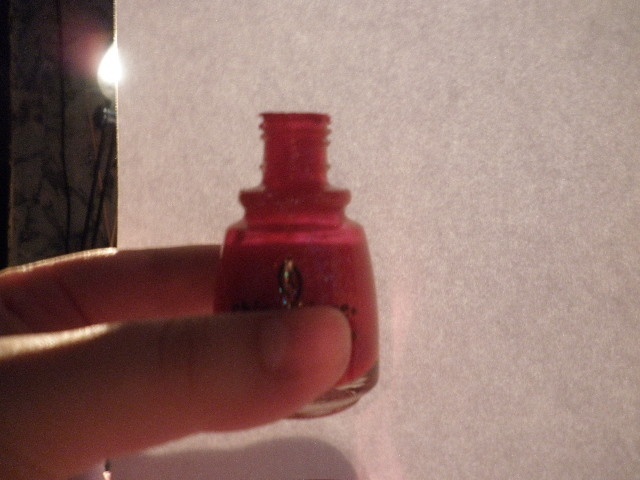 China Glaze - Moulin rouge (na fotce třetí zleva), příkládám fotku pořízenou bez blesku pro představu zbývajícího množství.
