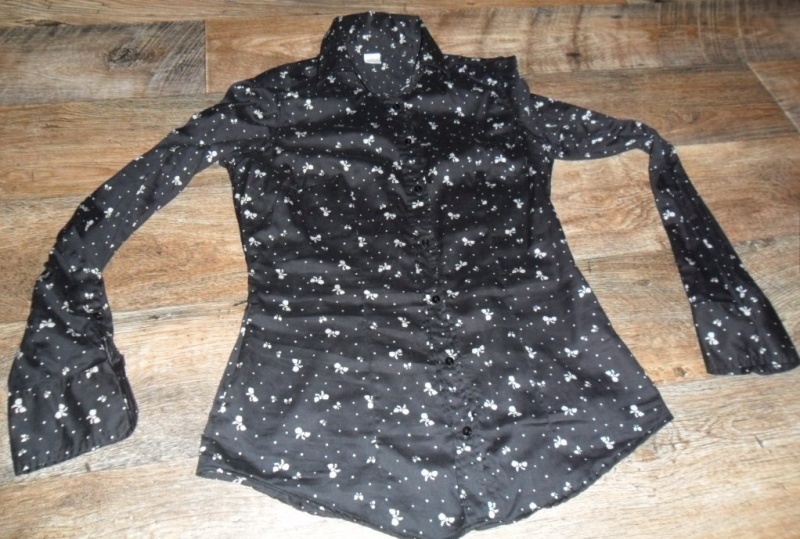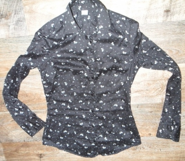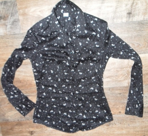 Predám krásnu čiernu košelu z velmi príjemného lesklého (nie satén) materiálu .Košela je velmi elegantná s potiskom /obrázkom malých teček a mašliček