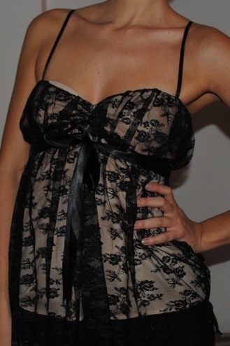 Pod prsiami sa viaže na mašličku. Spodná časť béžovej farby
