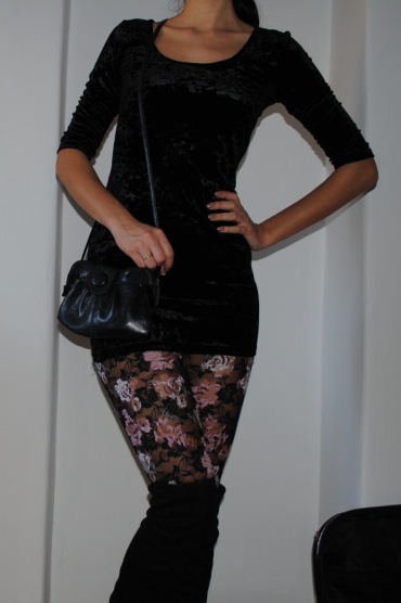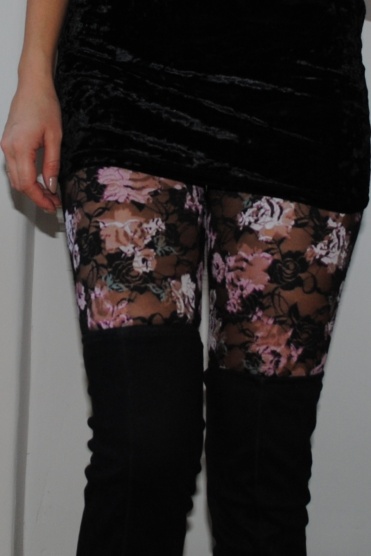 Leginy sú vhodné do vysokých čižiem. Sú ľahké, kombinácia čipky ružová, biela, sivá a čierna. Hodia sa napr k čiernym šatám ako na obrázku, su ľahko sexy. ( Na obrázku vid. šaty a čierna kabelka tiež predávam )