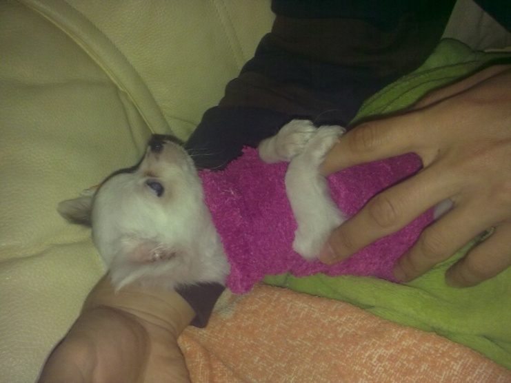 Taky se mi na té druhé fotce zdá hodně droboučký.Pozor u tak malých štěňátek na hypoglykemii.