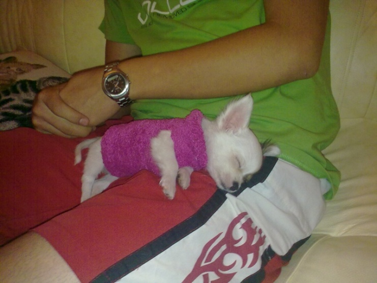 Ona byla jako malá takovej roztomilej uzlíček, pořád jsme se mazlili, na trávník se zezačátku bála jít a ani neštěkla.. Zato teď je jí plnej barák i dvůr a vede celou naší pší smečku (a to jsou všichni aspoň třikrát takoví jak ona)..