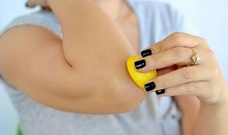 Osvědčeným receptem na ztmavnutá kolena a lokty je citronová šťáva. Jednoduše citron rozpulte a potírejte jím tmavou oblast. Výsledek se dostaví téměř okamžitě. Citron také pomůže vybělit nechtěná tmavá místo po nanesení samoopalovacího krému.