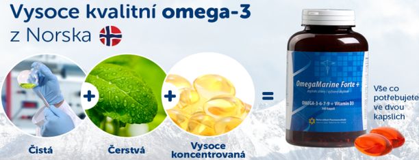 Vhodným způsobem, jak doplnit nedostatečný příjem omega-3 mastných kyselin, je užívání potravinového doplňku OmegaMarine Forte+ společnosti NaturaMed Pharmaceuticals. Byl vyvinut z norského lososa a obsahuje vysokou koncentraci omega-3 kyselin ve vyvážené kombinaci s kyselinami skupiny omega-6, omega-7 a omega-9. Jeho složení vychází z výzkumů, které ukázaly, že omegu-3 právě z lososa dokáže tělo využít lépe než jiné srovnatelné rybí tuky. Dostatečnou denní dávku omega-3 zajistí pouhé 2 kapsle denně.