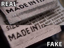 Značka Diesel má svůj ochranný prvek, který je těžké napodobit. Jedná se o tzv. microstitching neboli jemný stříbřitý proužek stehování na cedulce. Nachází se uvnitř každého výrobku. Při podrobném zkoumání nebo pod lupou si na něm můžete přečíst nápis „DIESEL“. Pokud je proužek příliš zářivý, připomíná alobal a chybí mu nápis Diesel, je to fake. Pozorně si rovněž prohlédněte cedulku s hlavou Indiána, u které je vyšit nápis Diesel-only the brave-Diesel. Pod tímto nápisem je slovo „size“ a pod ním velikost oblečení. Pod velikostí je nápis „made in Italy“, někdy „made in Morocco, Tunisia nebo Romania". Většina výrobků Diesel je vyrobena v Itálii. Na samém okraji cedulky s Indiánem je výše zmíněný „microstitching“ proužek, který však mají jen modely od roku 2003. Cedulka s Indiánem by u kalhot měla být na pravé straně u pasu. Za hlavní cedulkou s Indiánem by měly být ještě dvě další cedulky. Opraný dojem džínových kalhot je u originálních produktů vytvářen ručně, proto působí přirozeně. Padělatelé používají na vyšisování stroje a opraný vzhled tak vypadá daleko méně realisticky, spíše jako pravidelné škrábance. Nezapomínejte, že pravé džíny Diesel vám nikdy nepřijdou zabalené v plastovém sáčku.