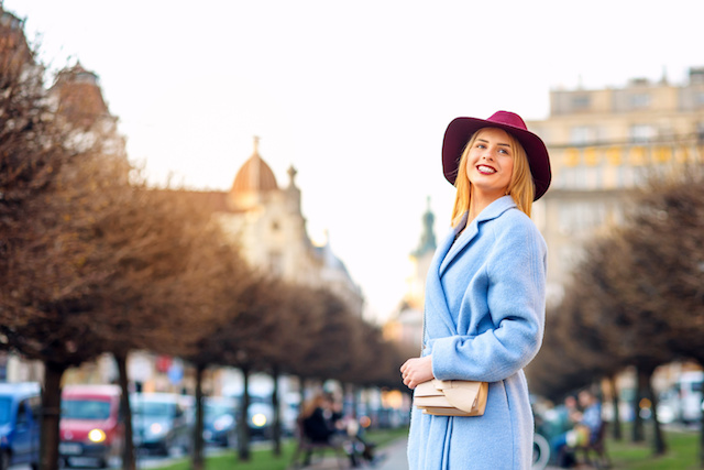 Nebesky modrá barva vynikne na těžších materiálech, jako jsou podzimní a zimní kabáty, bundy, dlouhé sukně, teplejší košile s dlouhým rukávem nebo teplé bavlněné šaty. Pokud byste zvolila bledě modrou na lehčích materiálech, mohl by outfit působit příliš sladce. V takovém případě můžete barvu malinko utlumit tím, že si k ní vezmete nějaký kontrastní prvek. Zkuste bleděmodrou spojit s něčím tvrdším, ke světle modrému kabátku obujte vysoké černé boty.