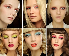 Jarní a letní paleta očních stínů je letos neuvěřitelně pestrá a plná sytých a výrazných barviček. Očním stínům jednoznačně vévodí červené tóny, kterými víčka modelek bohatě potřeli na přehlídkách značek Carolina Herrera, Derek Lam a Nina Ricci. Nejbarevnějšího a nejvíce pozitivního líčení si však užily modelky najaté módním domem Christian Dior - z mdlých éterických víl se rázem staly sexy divy z pestrobarevných kabaretů. Výrazné barvy prostě letos frčí, tak se jich nebojte a rozjasněte svůj pohled i vy.