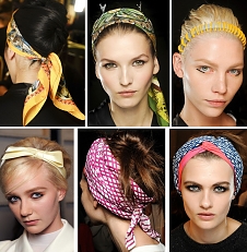 Současná móda nám velí pořídit si na léto zásobu čelenek, šátků do vlasů, turbanů a dalších vlasových ozdob. Šátky a turbany jsou na léto velice praktické a s jejich pomocí vykouzlíte neotřelý účes velmi snadno. Jelikož jsou momentálně v kurzu retro 60tá léta, poohlédněte se po potištěných hedvábných šátcích ve stylu Dolce & Gabbana a Marc by Marc Jacobs. Hitem jsou rovněž výrazné čelenky (Louis Vuitton, Fendi) a in zůstávají i umělé květiny.