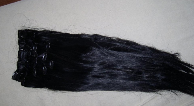 1Prodám husté(160g), dlouhé 60cm černé vlásky clip-in z pravých vlasů - použité pouze jednou na maturitní ples. Původní cena 3000kč