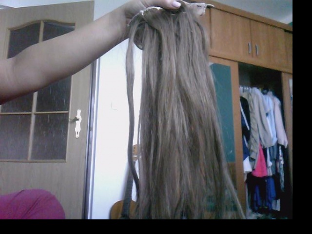 Ahoj, chtěla bych prodat clip in světle hnědý... Byl původně melír blond, ale jelikož mám ted světle hnědou, tak jsem ho obarvila(smícháním asi 3 barev) a je to moc hezká barva, ale bohužel uplně jiná než mám já a je to poznat.... Je dlouhý...Původně to bylo asi 60 cm, lehce jsem zastřihla konečny, protože byly takové tenčí...ale pořád jsou to hodně dlouhé vlasy.... Je to 7 kusů clipinů. Prodám za 700 plus pošta