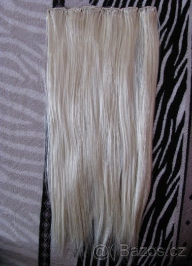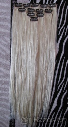 Prodám zcela novou sadu syntetických vlasů clip in. Sada prodlouží vlasy rovnoměrně po celé hlavě. Sada je vyrobena z vysoce kvalitního japonského kanekalonu, který je ve světě stále více oblíben a žádán. Proslul tím, že vypadá a chová se stejně jako vlas lidský, s tím rozdílem, že u něj byly potlačeny negativní vlivy, které se u lidských vlasů objevují (např. lámavost, třepení,vysušování vlasů vlivem slunečního záření, ztráta lesku atd.)