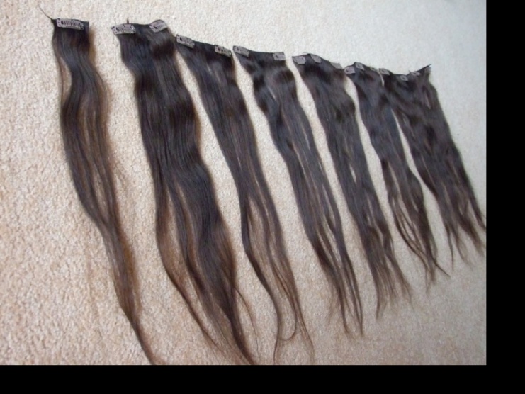 Prodám clip-in vlasy 50cm středně hnědé(čokoládové). Pravé lidské, kvality AAA, 7pásů na celou hlavu krásně stačí. Měla sem je dvakrát na sobě. Jednou jako rovné a podruhé zvlněné. Dají se krásně omýt a upravovat, jak žehličkou, tak kulmou