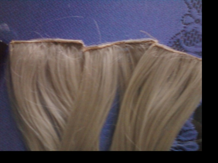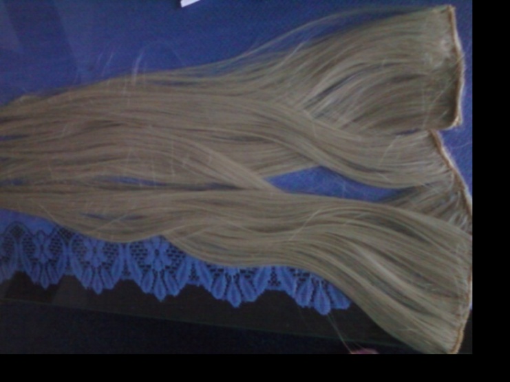 0Prodám nové clip in platinové barvy délka 60cm a 100g.Obsahují 3 pásy po 2 sponkách.