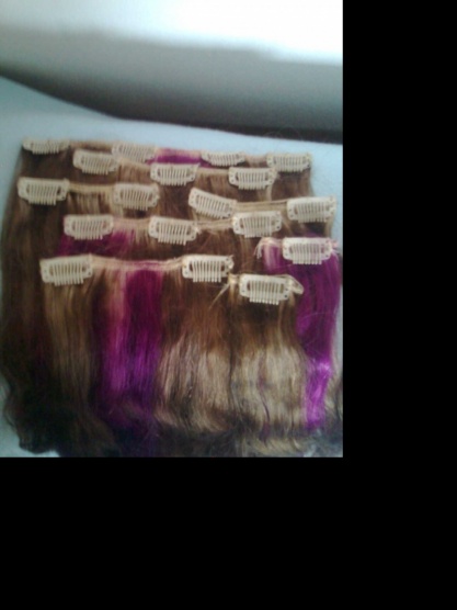 Clip in prave remy zakoupené od spolehlivého prodejce jako nejsvětlejší blond. Jsou obarvené u kadeřnice. Bohužel je obarvila o odstin tmavěji než jsou moje a odbarvovat clip in se nedoporučuje proto posílám dál. Nikdy jsem je neměla nandané. jsou velice kvalitní délka je okolo 53cm (koupene jako 50) váha 110g. Barva odpovída fotkám.
