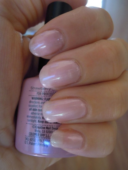 Přikládám foto svého prvního pokusu se shellacem. Jsou to dvě vrstvy strawberry smoothie. Vydrželo mi to pěkné týden. Jsem na mateřské, ruce pořád v něčem máčim, takže pro mě úspěch. Obyčejný lak i s podlakem a nadlakem mi držel hezký tak den dva.