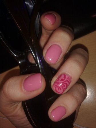 A mé momentální nehty shellacem Rose bud, razítko Konad, lak Konad Princess jméno barvy si nepamatuji