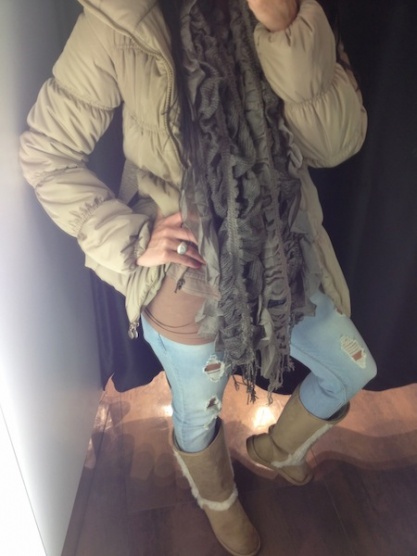 Před asi třema dnama jsem si koupila od porodu první kalhoty, doposud jsem nosila jen legíny, protože na mě prostě jeansy apod vypadaly strašně. Taky jsem ráda, že už legíny nemusím nosit.