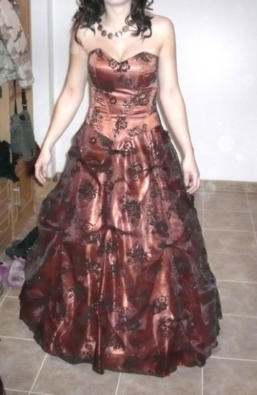 Plesové šaty typu maturantka z laciné látky s našlehanou sukní