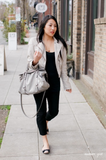 K té nosím bílé balerínky, nebo černé s bílým prošitím, lodičky se mi moc nelíbily. Kabelku sladím k botkám