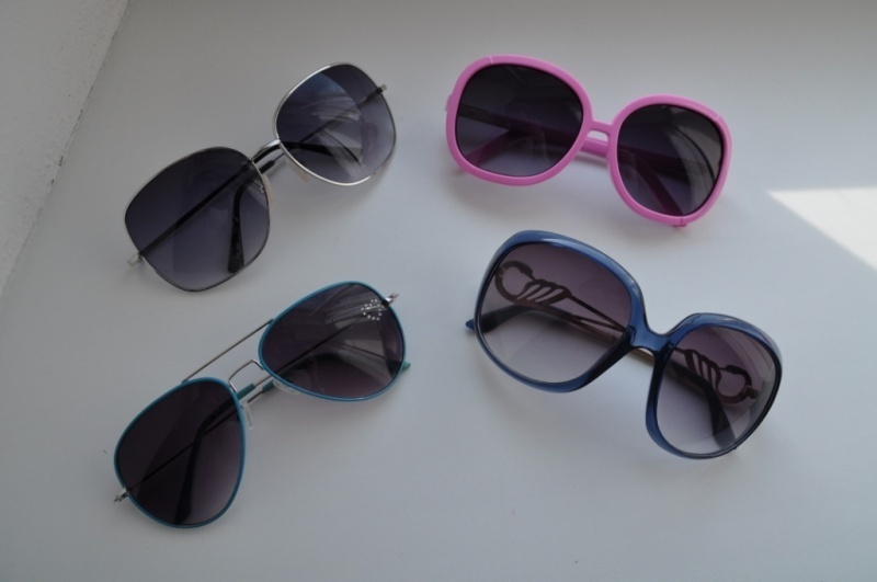 Prodám čtvery sluneční brýle, nenošené, nepoškrábané, ty tmavě modré jsem měla jednou, ale nesedí mi, jinak úplně nepoužité.