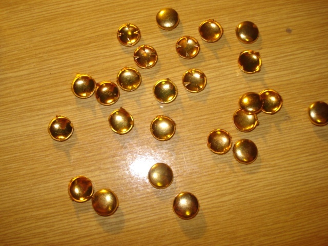 Prodávám 25 ks cvoků na přidělání kamkoliv. Jsou zlatavé barvy.