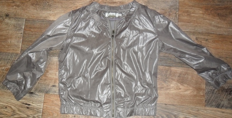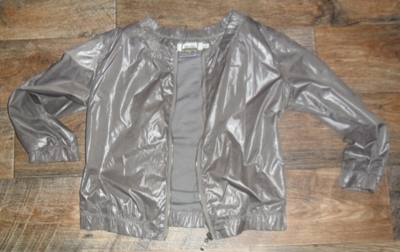 Predám krásnu ,kratší bundičku šedej farby s 3/4 rukávmy.Materiál bundičky je šuštiakový ,lesklý.Je raz oblečená,možem teda povedať top stav