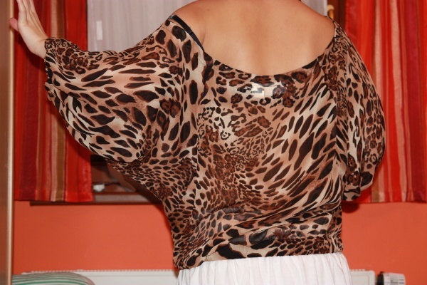 Volnější výstřih takže lze nosit se spadlým ramenem nebo s oběma dolu.