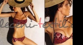 Mají nevyztužený top - dá se nosit rovný nebo uprostřed otočený - viz foto, šňůrky na zavazování jsou po bocích, takže se dají zavazovat kolem těla obě nad sebou, nebo jedno vzadu a jedno kolem krku. Mají nádherně řešené kalhotky s kamínky Swarowski a vzadu řasené - vypadá to moc pěkně.
