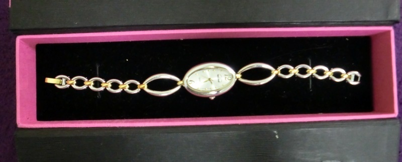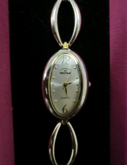 Délka náramku 20cm, ciferník cca 2,8cm. Kombinace stříbrné a zlaté. Voděodolné.