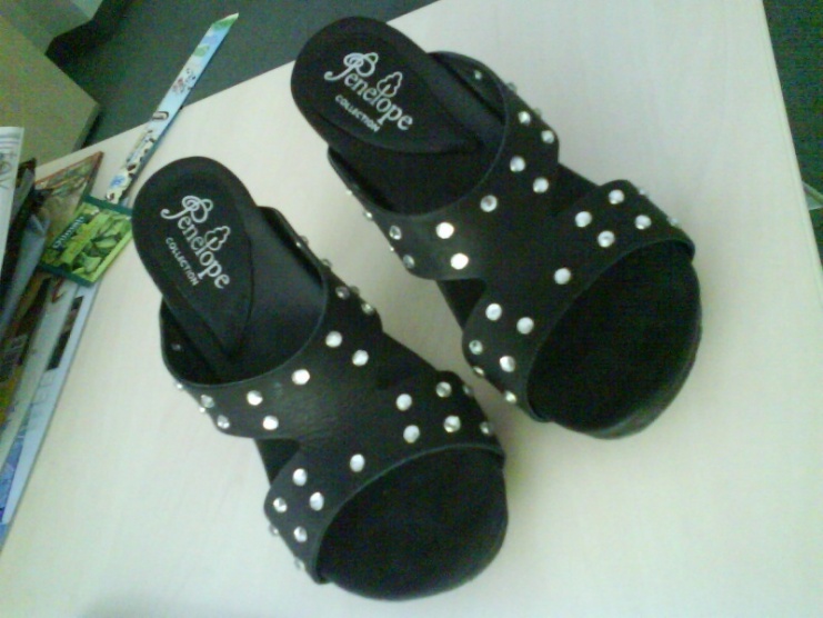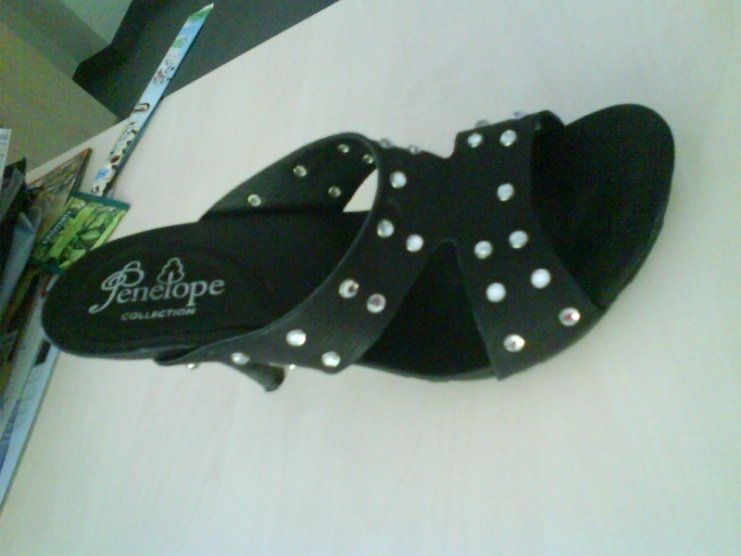 prodám krásné černé pantoflíčky, pásky jsou z kůže na nich kamínky, 3 x nošené, bohužel mám vysoký nárt tak mě mačkají, cena 560 Kč vč. pošty , pořizovací cena cca 1.500 Kč, přivezené ze Španělska.