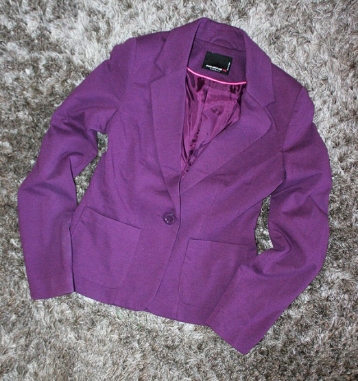 jen vykoušené a nenošeno tmavě filaové sáčko, v pase zapínání na velký knofík, kapsy, v ramenou má jemné vypodšití