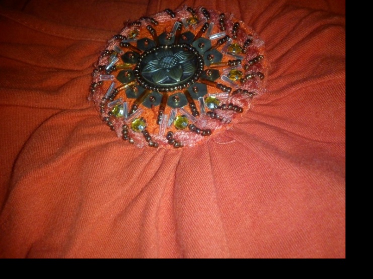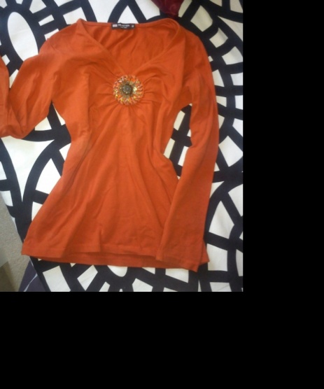 Tričko s dlouhým rukávem, s výstřihem. Barva je tmavší oranžová! (jako na detailnější fotce). jednou vzaté. Vypadá moc hezky na těle.