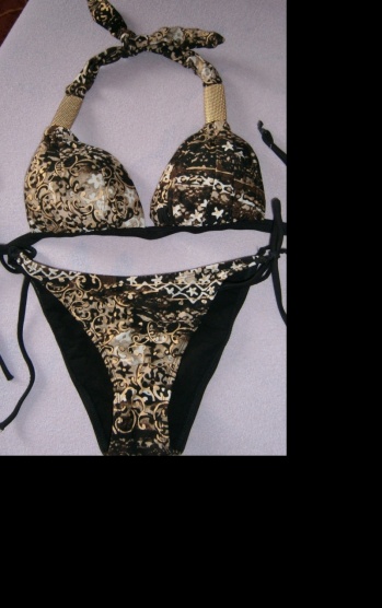 Dámské vzorované zlato hnědé plavky. Podprsenka je push-up, komu nebude sedět tak si vycpávky může vyndat.Kdo by měl zájem další fotečku zašlu.Jelikož jsem otěhotněla tak mi plavečky nesedí.Jsou nepoužité jen zakoupené a vyzkoušené.PC 599,-Cena je včetně poštovného!