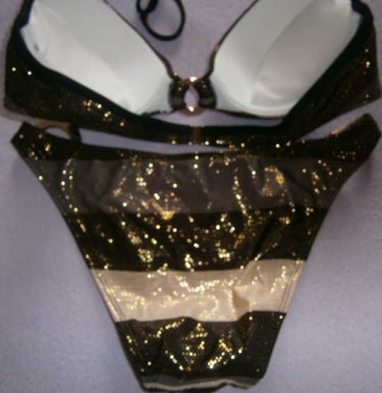 0Dámské, lesklé, černo zlaté push-up plavky. Zakoupené v italském butiku. Nevyužité. Nesedí mi velikost.Nové! cena je včetně poštovného.