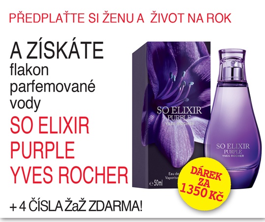 Žena a život: roční předplatné 660 Kč +dárek flakon luxusní parfémové vody So Elixir Purple Yves Rocher v hodnotě 1350 Kč