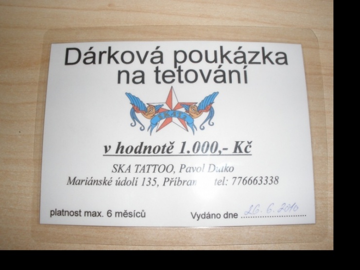Prodala bych poukázku na tetování v hodnotě 1000,- za 700,- i s poštovným , dostala jsem jako dárek od kamárádu,ale tetování zatím nechci