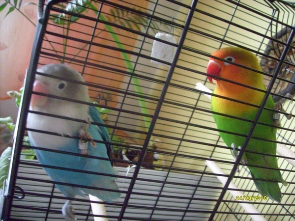 Daruji do dobrých rukou 2 papoušky Agapornis Fischeri, pohlaví nevím, protože na to jsou třeba testy DNA. Jeden je barva přírodní a druhý nejspíš violet, moc se v těch barvách nevyznám