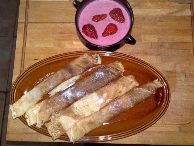 .Vídím,že jsi taky závislá na palačinkách.Koupila jsem si zase sojovou kyšku a jahody a teď mám dylema k čemu si je dám.Nevím jestli si mám upéct perník,nebo bábovku a nebo zase palačinky jako minulý víkend.