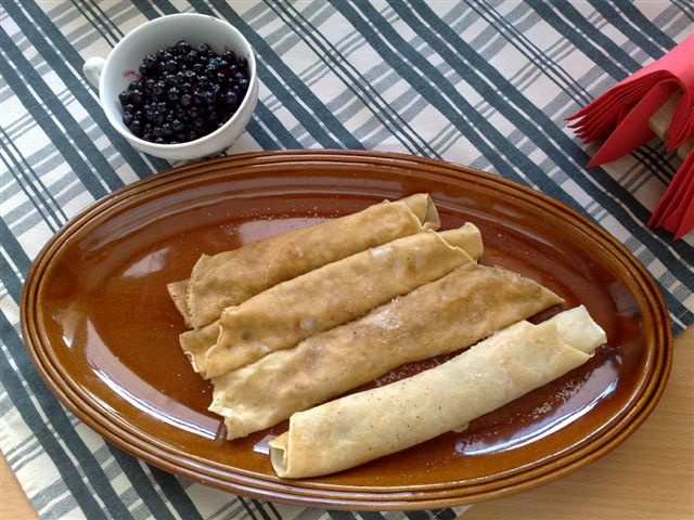 Posypala jsem každou trochou skořice a fruktózou, stočila a navrch posypala rozmixovanou fruktózou - po rozmixování vznikne trochu hrubší prášek než moučkový cukr. No a jako přílohu jsem dnes zvolila - rozmražené borůvky s fruktózou.