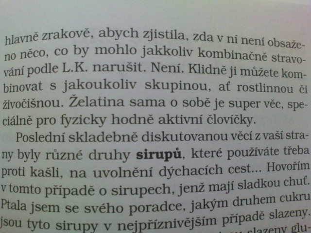 Já teda želatinu kombinuju s oběma skupinama,protože ji miluju.Pozorně jsem si prostudovala všechny knížky od L.K. a ta ji zařazuje do neutrální skupiny.I v kuchařkách ji používá s oběma skupinama.Ještě jsem našla jeden článek z knížky ,,Dieta a 199 otázek".