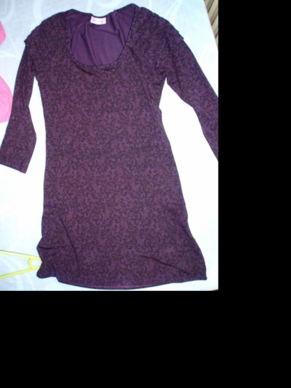 Prodám delší fialovočerné tričko z Orsay, na ramenech je jakoby poskládané, má tříčtvrteční rukávy. Pro odvážné by mohlo sloužit i jako minišaty. Nebylo ani jednou vzaté.
