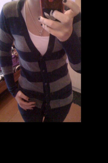 Delší šedo-modrý pruhovaný svetřík Clockhouse