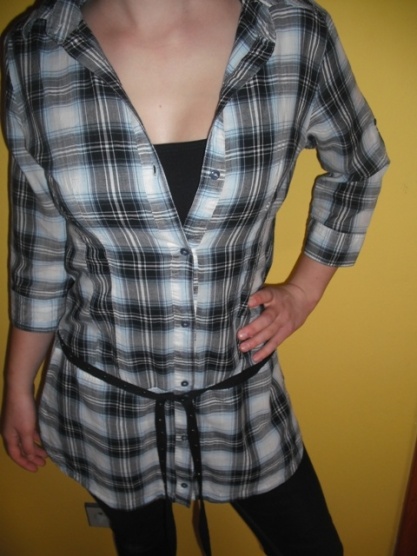 0Top stav, vhodná k legínám, otvory na pásek-vz foto, pásek přidávám ke košili. Uvedena velikost L, sedne i M. Cena: 250 kč