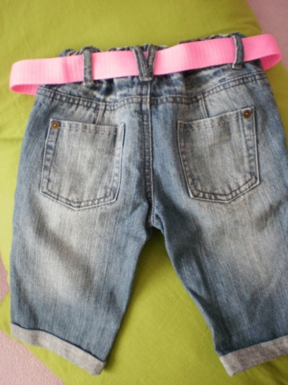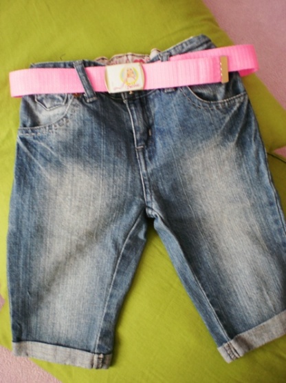 Prodám dívčí 3/4 rifličky s páskem. Velikost uvedena 6-7 let. Jsou v pase do gumy, kterou lze povolit nebo přitáhnout knoflíčky; zapínání na zip, poutka na pásek. Rifle jsou nošené, ale v pěkném stavu, pouze z vnitřní strany je látka v pase trochu vypraná, ale při nošení nejde nic vidět. Jakékoliv dotazy ráda zodpovím.